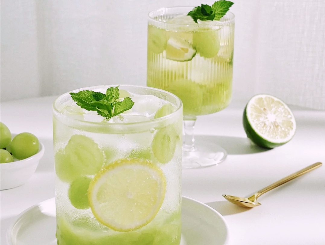 自制夏日饮品:青提柠檬气泡水,西柚蜂蜜气泡水,蜜桃苏打冷饮