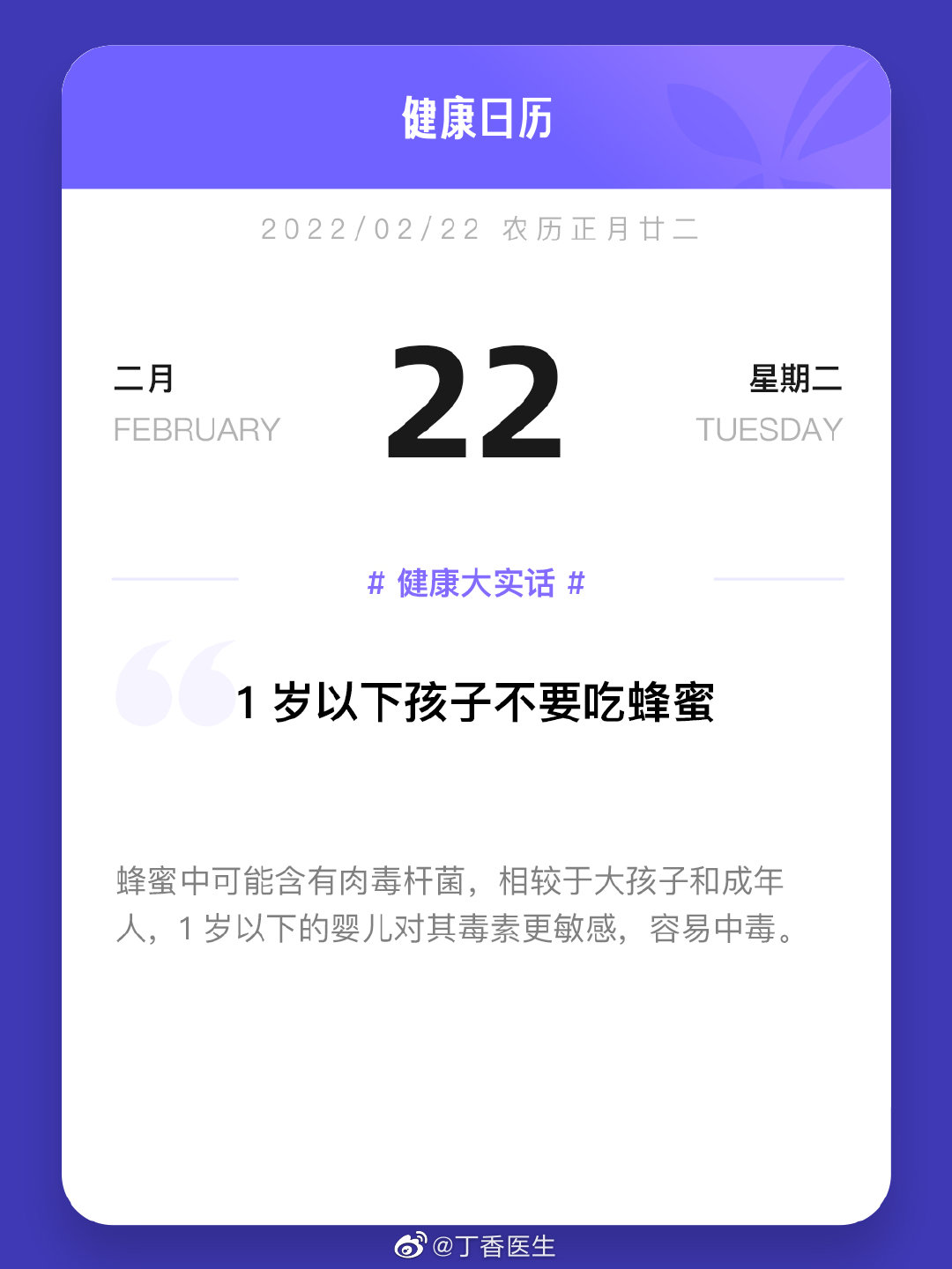 今日份健康日历:1 岁以下孩子不要吃蜂蜜